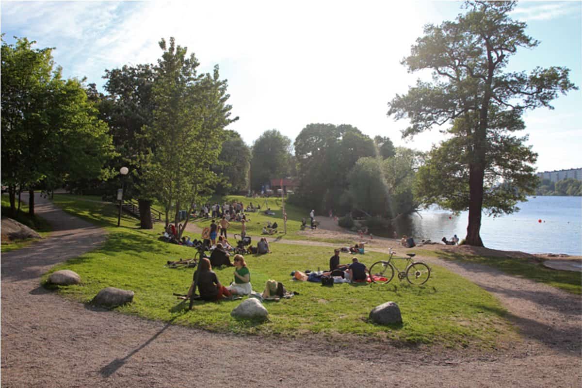 Langholmen ist auch ein beliebtes Ausflugsziel für die Stockholmer. 50 Meter vom Hotel entfernt befindet sich direkt ein kleiner Sandstrand und nur wenige Gehminuten entfernt befinden sich zahlreiche Bootsstege oder Felsen, auf denen man es sich bei dem endlos erscheinenden Sonnenuntergang gemütlich machen kann. Gute Plätze sollte man sich besonders an Wochenenden rechtzeitig sichern. Eine absolut traumhafte Kulisse!