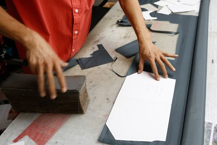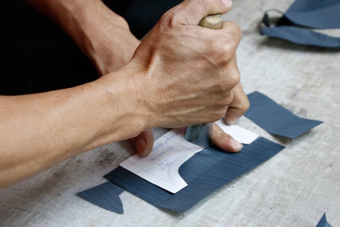 Die Zeichnungen des Berliner Designer-Teams anhand meines Briefings und die Anfertigung dieser Pappen durch die sogenannten Pattern Maker musste schon Unmengen an Zeit gekostet haben und nun folgte das aufwändige Zuschneiden der unterschiedlichen Stoffe, wonach endlich der Nähvorgang beginnen konnte, für den eine Näherin etwa drei Tage bis zur endgültigen Fertigstellung brauchen würde.